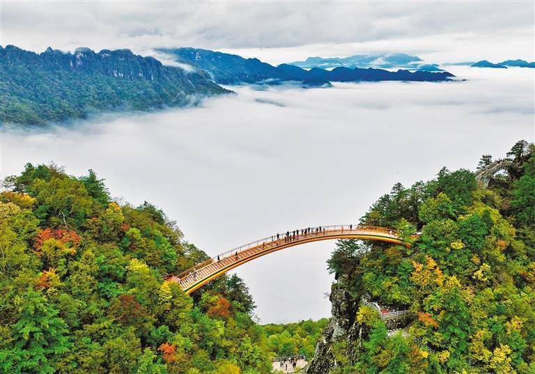 10月3日,位于湖北省西北部的神农架天燕景区云海翻涌。云海是神农架景区秋季最具代表性的自然景观。 李 潇摄(中经视觉)
